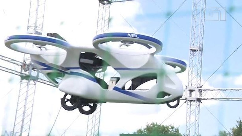 Modelo da Nec Corp parece mais um drone gigante e utiliza 4 hélices para sair do chão. Governo japonês que tornar carros voadores viáveis até 2030.