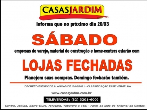 DIANTE DA ATUAL SITUAÇÃO PANDÊMICA, O NOSSO COLEGA E ECONOMISTA LUIZ ANTONIO JARDIM COMUNICA A RESPEITO DOS NOVOS HORÁRIOS DE FUNCIONAMENTO DE SUA LOJA.