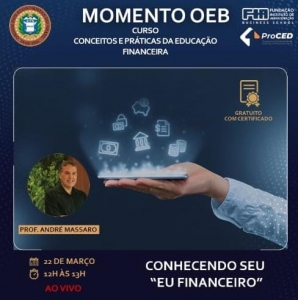 A Diretoria da Ordem dos Economistas do Brasil – OEB tem o prazer e a honra de convidar o colega economista para o “MOMENTO OEB” que ocorrerá no dia 22.03.2022, das 12h às 13h, a distância ao vivo, pelo zoom. Na ocasião, apresentaremos o inteiro teor da programação e teremos o primeiro evento da série Conceitos e práticas da Educação Financeira – Conhecendo seu “eu” Financeiro, a ser conduzido pelo Prof. André Massaro. Neste encontro discutiremos como conquistar liberdade e autonomia com ajuda da educação financeira.