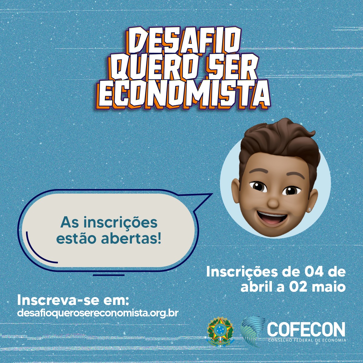 Estão abertas as inscrições para o Desafio Quero Ser Economista, uma competição virtual que mede os seus conhecimentos e permite aprender sobre economia e sobre a profissão de economista. Os três primeiros colocados ganharão prêmios em dinheiro.