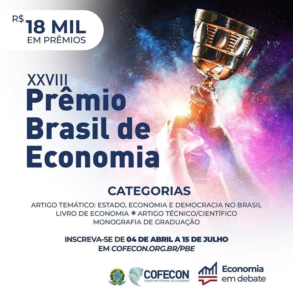 . São R$ 18 mil em prêmios. Economista, participe, o próximo trabalho reconhecido pode ser o seu.