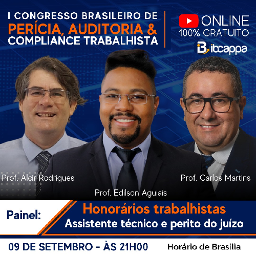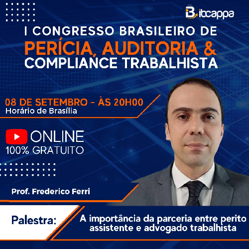 Hoje começa o I Congresso Brasileiro de Perícia, Auditoria & Compliance Trabalhista. O Evento será 100% online e gratuito e reunirá as maiores autoridades no assunto para trazer conteúdo prático e atualizado.