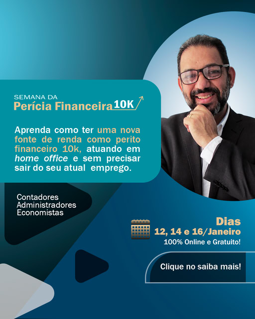 O evento é educativo e voltado para quem deseja entender o funcionamento da perícia financeira judicial e suas oportunidades no Judiciário.