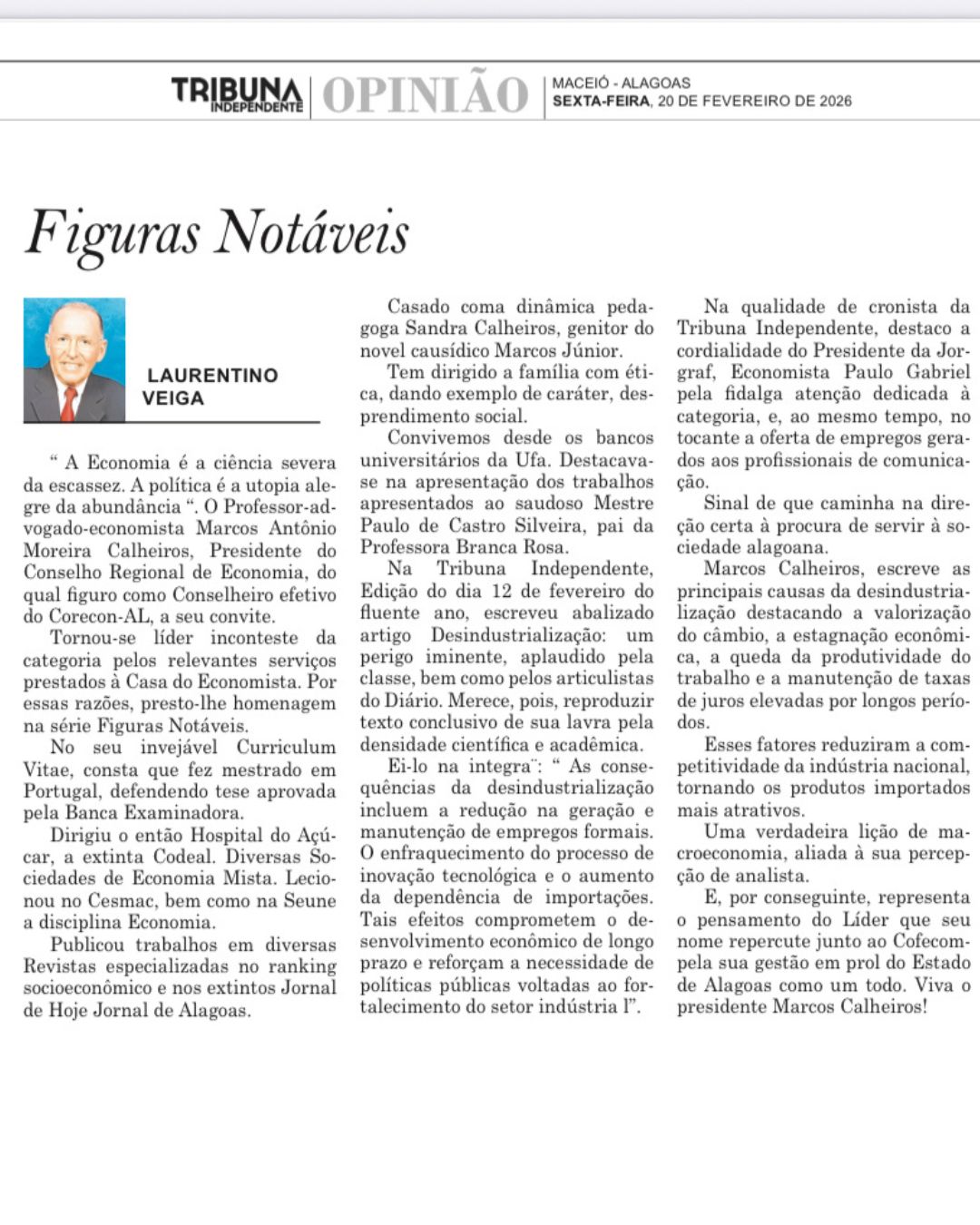 2026-02-20 corecon-al HomeÚltimas Notícias - 11 horas ago - in Últimas Notícias 0 Comentários desativados em