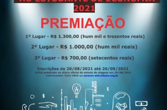 Comentários desativados em O Presidente do Conselho Regional de Economia 12ª Região – CORECON-AL torna pública a realização do 9º Prêmio de Estímulo ao Estudante de Economia – 2021.