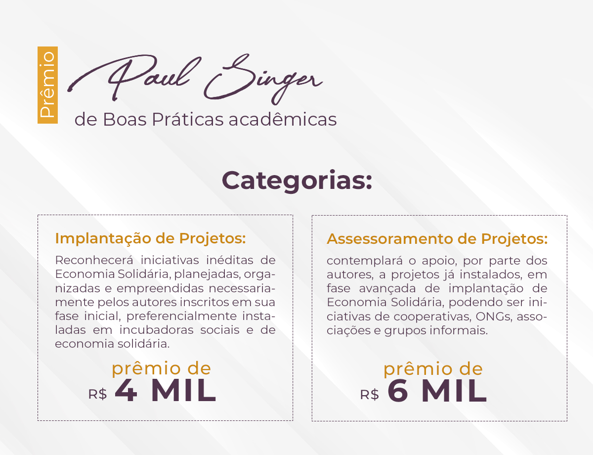 As inscrições estão abertas até o dia 31 de agosto de 2023. A divulgação do resultado está prevista para o dia 15 de dezembro, Dia Nacional da Economia Solidária.