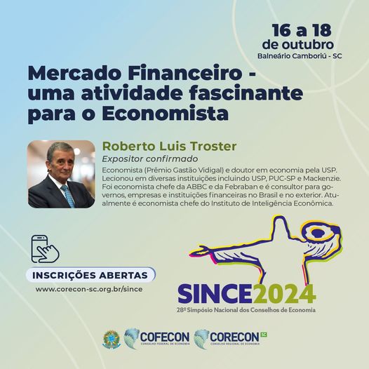 Um dos temas em destaque será “Mercado financeiro: uma atividade fascinante para o economista”, com a participação do renomado Roberto Luis Troster, economista de grande prestígio e trajetória de sucesso.