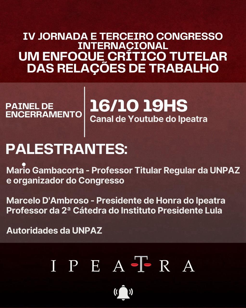 IV JORNADA E TERCEIRO CONGRESSO INTERNACIONAL UM ENFOQUE CRITICO TUTELAR DAS RELAÇÕES DE TRABALHO