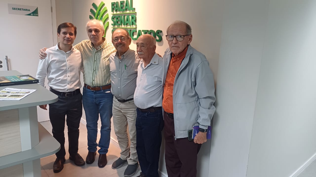 O Presidente do Corecon Al, Marcos Calheiros, em visita ao Superintendente do Senar- Serviço Nacional de Aprendizagem Rural, Economista Fernando Doria, acompanhado dos Economistas Ulisses Ávila e Laurentino da Rocha Veiga. E do Advogado Doria Junior. Uma conversa bastante proveitosa e de conhecimento dos projetos do Senar Al.