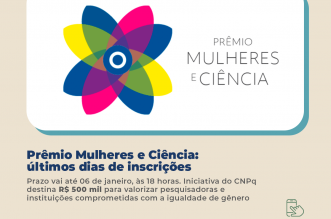 Termina nesta segunda-feira, dia 06 de janeiro, às 18 horas, o prazo de inscrições para o Prêmio Mulheres e Ciência, que tem a finalidade de promover a diversidade, ...