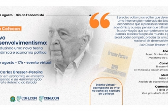 No dia 13 de agosto, em comemoração ao Dia do Economista, o Cofecon realizará um debate com o professor Luiz Carlos Bresser-Pereira, ex-ministro das pastas da Fazenda, da ...