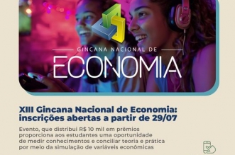 A XIII Gincana Nacional de Economia, competição organizada pelo Conselho Federal de Economia (Cofecon) para estudantes de Ciências Econômicas e cursos conexos, terá suas inscrições abertas a partir ...